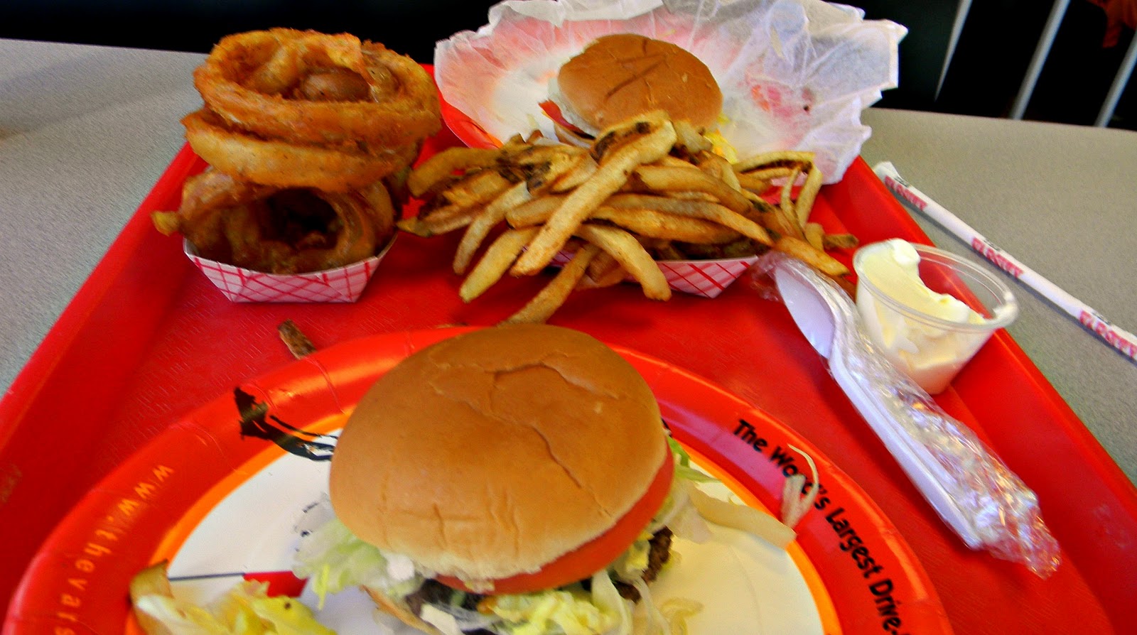 I had the Glorified Burger and onion rings. OMG!!!! I know I carry on about how we need to stay away from fast food and fried foods, but those onion rings were to die for. Jorge had the Glorified Burger with fries. We shared our sides ('cos that's how we roll), and the fries were good also, but not like the onion rings.