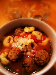 This week is Clean Out the Freezer and Pantry week, which can lead to some interesting meals. Fortunately, last night's turned out well. I found a package of frozen cheese tortellini and a package of frozen meatballs, canned tomatoes and beans in the pantry, and from that we got soup. We've actually been having a little cold spell down here in Florida, so a bowl of hot soup and a slice of warm garlic bread really hit the spot. And it was so simple it was embarrassing.