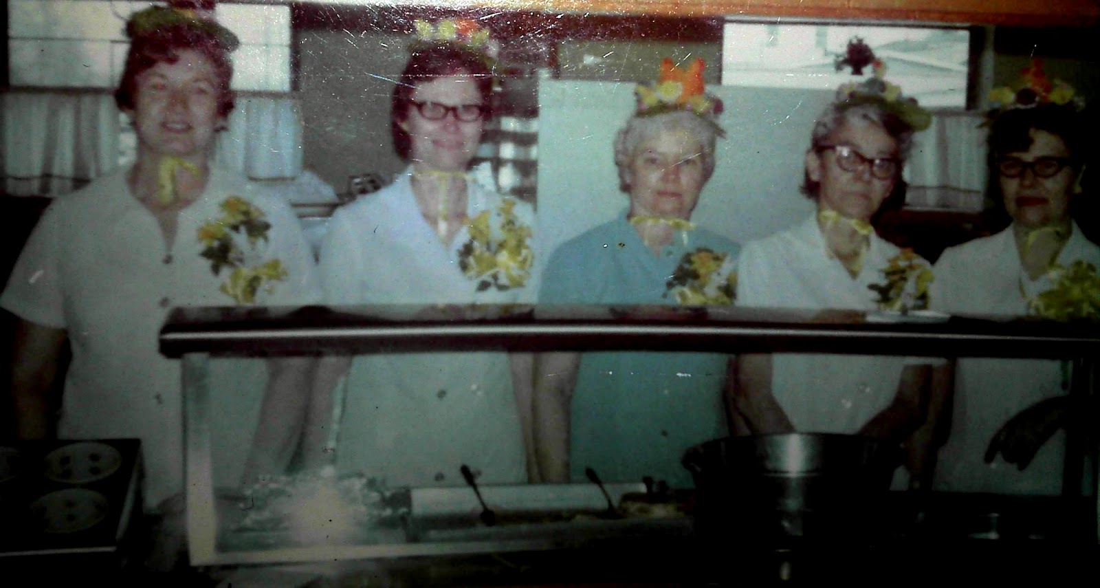 We've enjoyed catching up with one another, and taking trips down Memory Lane. As a matter of fact, we went all the way back to Elementary School. I didn't have the privilege of attending school with them at that point, but it's fun hearing their stories. One of my friends, Trixie Lamb Kinniard (Hi, Trixie!) had the recipe for the cookies they served at Grapevine Elementary back then. Her mother got it from one of the lunchroom ladies. Obviously, I don't have pictures of the Grapevine lunchroom ladies, but oddly enough, my grandmother (Nanny) was a lunchroom lady at West Broadway Elementary in the same county. So, I'll use a picture of their lunchroom ladies. For all I know, they may have served the same cookies.