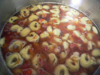 This month is also a great time to start using all of those great soup recipes. Fall is here; there's a crispness in the air; and you've started pulling on a sweater when you go out. So, how about serving a nice, hot bowl of pasta soup tonight? Here is a repost of my Easy Tortellini Soup recipe: