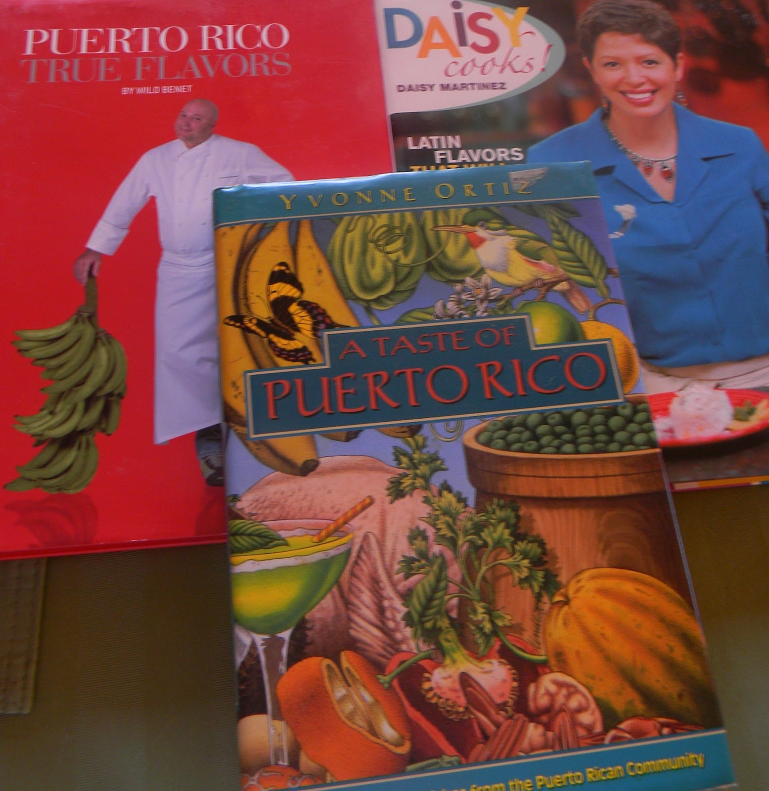 Now, I will never cook as well as my mother-in-law, but that doesn't keep me out of la cocina (the kitchen). There are several good cookbooks out there that are either written in English or have been translated to English. My favorites (just to name a few) are "A Taste of Puerto Rico" by Yvonne Ortiz, "Puerto Rico True Flavors" by Wilo Benet, and of course, "Daisy Cooks!" by Daisy Martinez. If you're not familiar with Daisy, she is on PBS and Food Network.